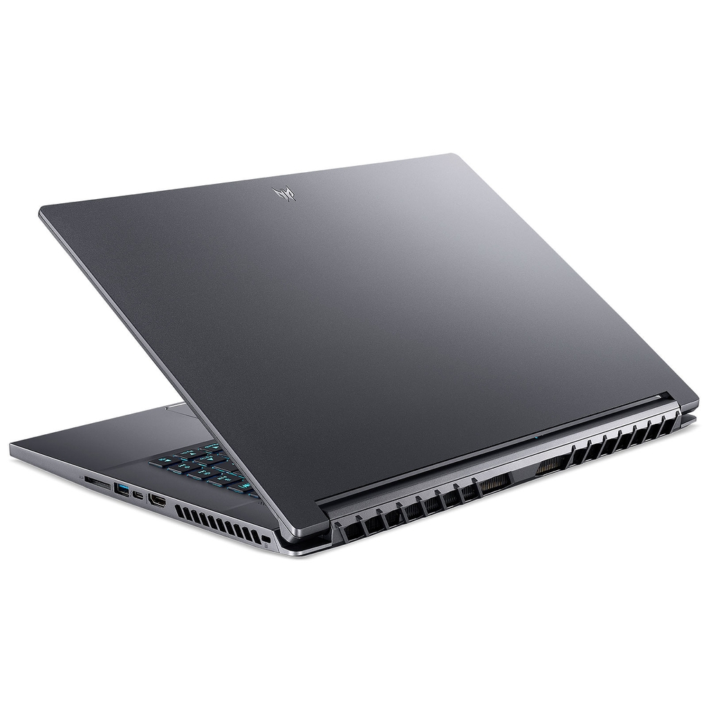 Máy có tone màu xám trông khá “sang xịn” đẳng cấp, nhưng vẫn vô cùng mạnh mẽ đúng phong cách gaming. Nắp lưng không có các đường cắt vát, hay đèn LED rực rỡ, logo Predator cũng không phát sáng trên nắp và thương hiệu dưới màn hình, đã được thay thế bằng logo tinh tế hơn nhiều, khá nhỏ nhắn được đặt một góc trên nắp lưng.